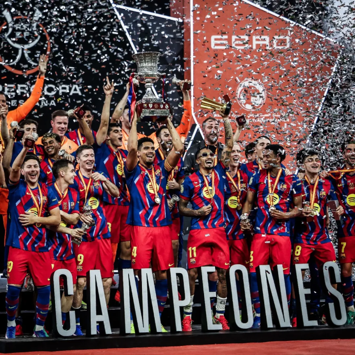 千嗨体育特别注意到一项“沙特定律”:所有在沙特举办的西超杯冠军,最终都在该赛季赢得了西甲冠军。这对目前联赛领先4分的巴萨而言,无疑是个积极信号。